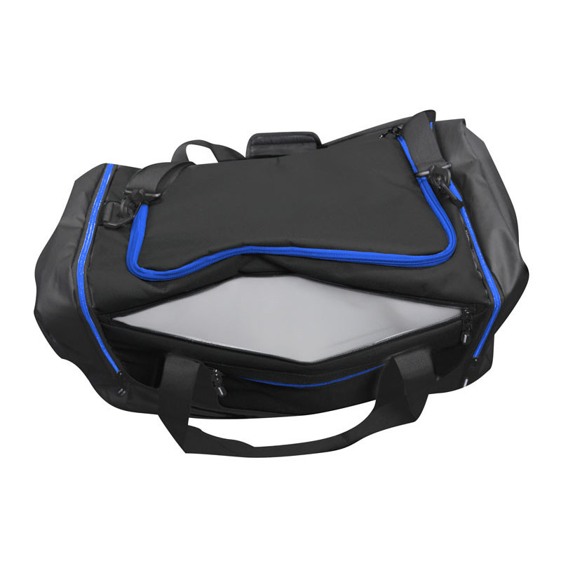 *Durable, water-resistant Polyester shell *45-liter capacity *YKK® zipper used for main compartment *Includes built in, vented shoe bag *Waterproof zippered compartment to keep wet items separate *Front exterior zippered pocket *Two padded handles with Velcro® closure *Adjustable, padded shoulder strap