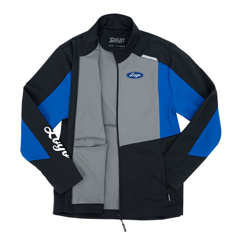 *100% Polyester 3-layer softshell fabric with bonded membrane *Breathable, wind resistant *Seamless cuff & hem *Soft, brushed fleece lined stand collar *Two lower zippered pockets *Chin protector & interior storm flap *Reflective accents *YKK® center front zipper *Regular fit